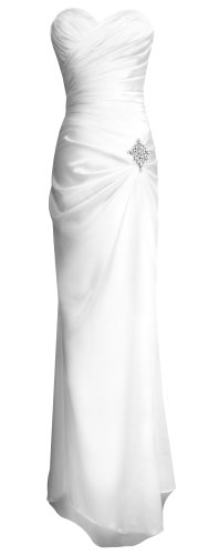 Review on this Strapless Long Satin Bandage Gown Bridesmaid Dress Prom Formal Crystal Pin, L, White.